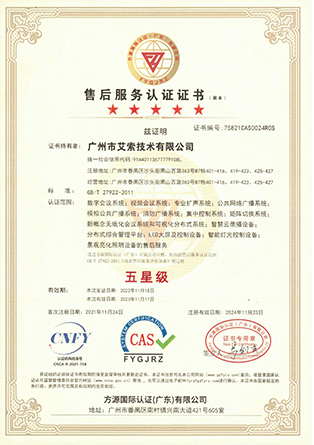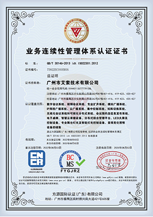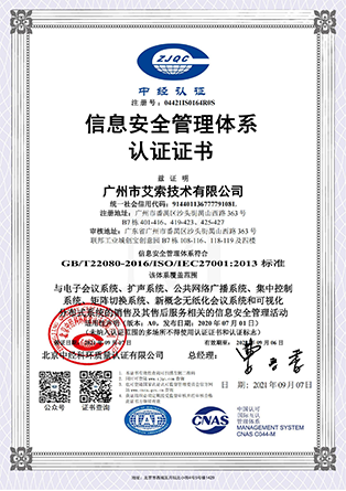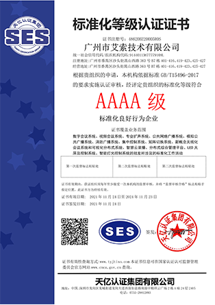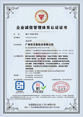 艾索先后通過國家高新技術企業、創新型中小企業、專精特新中小企業、兩化融合管理體系A級、軟件服務商交付能力等級、廣東省守合同重信用企業等企業資質認定,獲得質量管理體系、環境管理體系、職業健康安全管理體系、信息技術服務管理體系、信息安全管理體系等國際認證,以及知識產權管理體系、商品十星售后服務評價體系、企業誠信管理體系、4A級標準化等級評價體系、綠色供應鏈管理體系、業務連續性管理體系等國家認證。